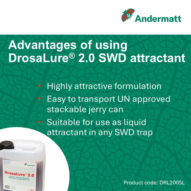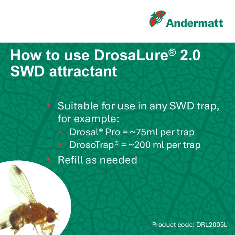 Suitable for use with any spotted wing drosophila trap, such as Drosal Pro https://andermattuk.com/products/drosal-pro and Droso Trap https://andermattuk.com/products/drosotrap