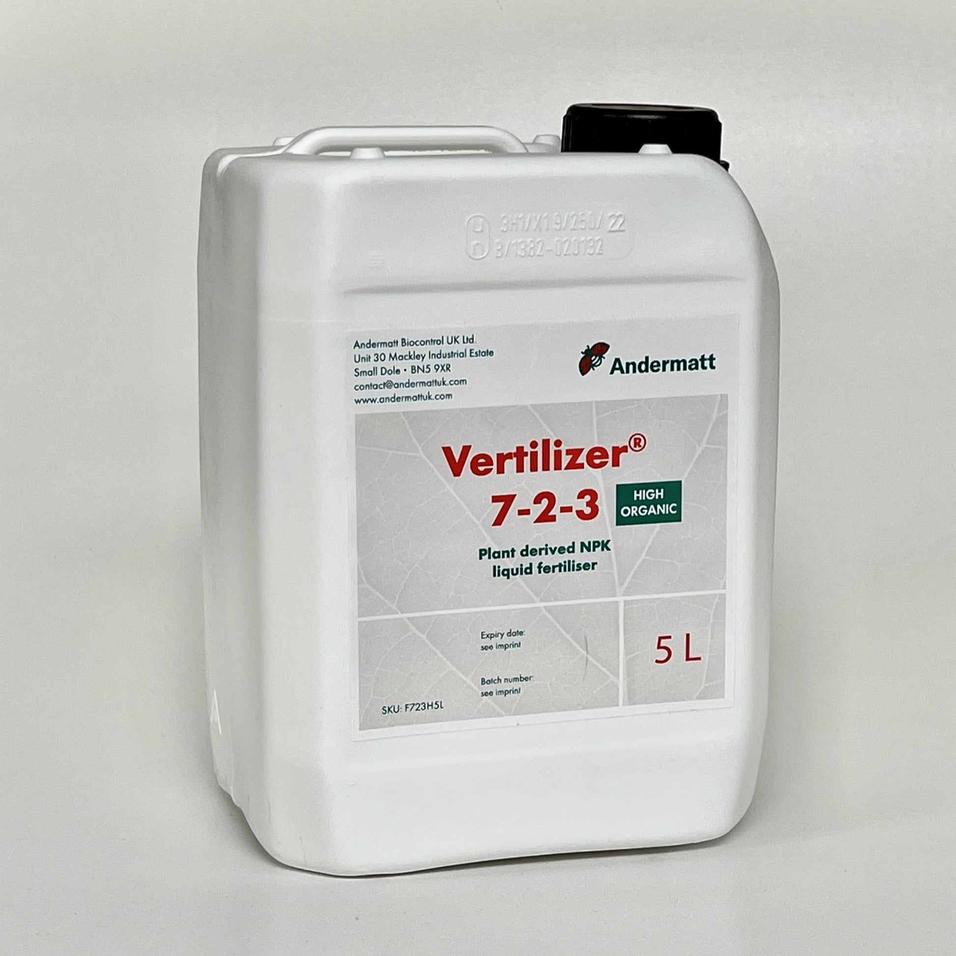 Rate of use and fertiliser application frequency will vary depending on the crop and the growing environment. Vertilizer 723 (High Organic) offers a flexible way to control and adjust the level of Nitrogen (N), Phosphorous (P) and Potassium (K) applied to the plants in a similar way to mineral fertilisers.